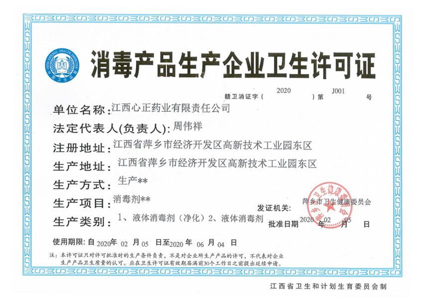 消毒产品卫生许可证